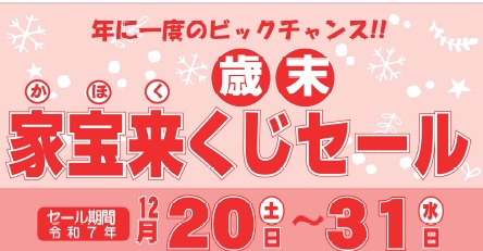 当選発表等詳細は、コチラをご覧ください→歳末家宝来くじセールチラシ
