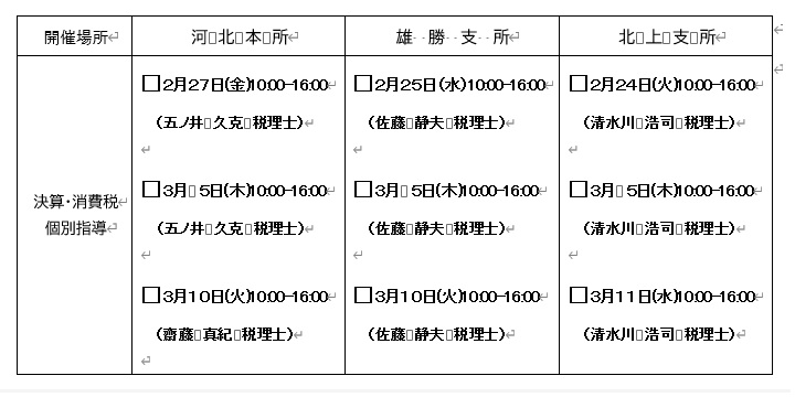 今年度の税理士による個別指導の日程が決定しましたのでお知らせいたします。